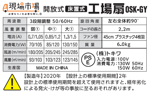 | 商品名 | 現場市場 工場扇 45cm 床置 据置 開放式 OSK-GY |