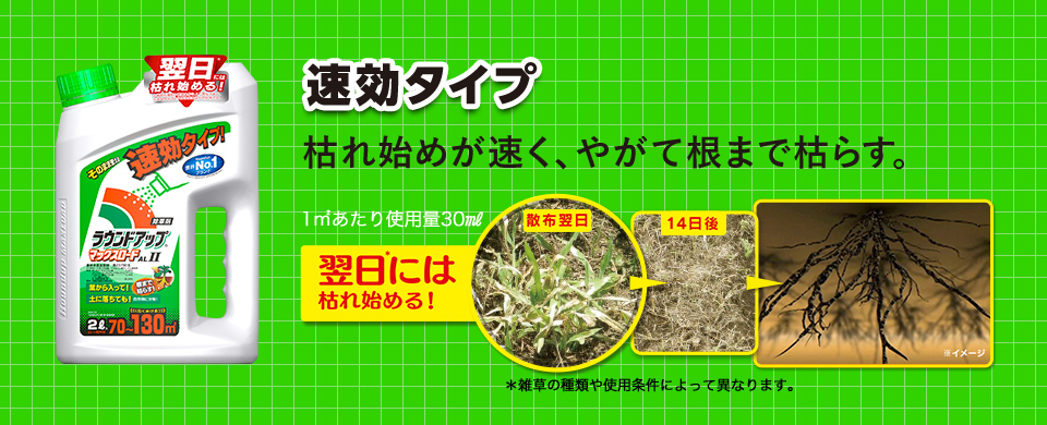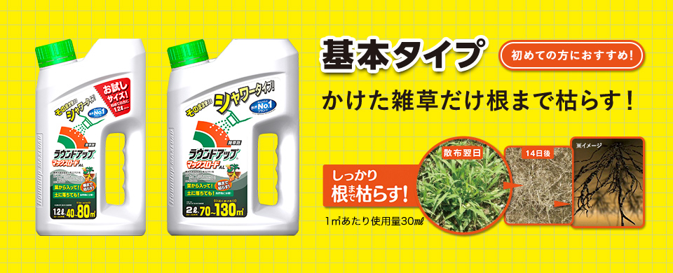 シャワータイプで手軽に使える!むしってもむしっても、また生えてくる悩みを『まくだけで』解決!原因の根っこから枯らします!