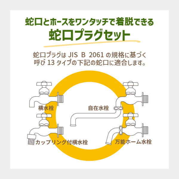 JIS B 2061の規格に基づく呼び13タイプの蛇口栓に取付けできます。