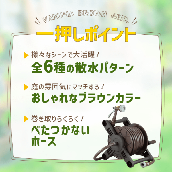 落ち着きのあるレトロカラーリール!さらさらホースで巻き取りやすい!