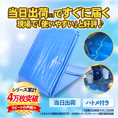 | 商品名 | 現場市場 ブルーシート #3000 3.6m×5.4m (実寸3.4m×5.2m) OSK-BS30-3654 |