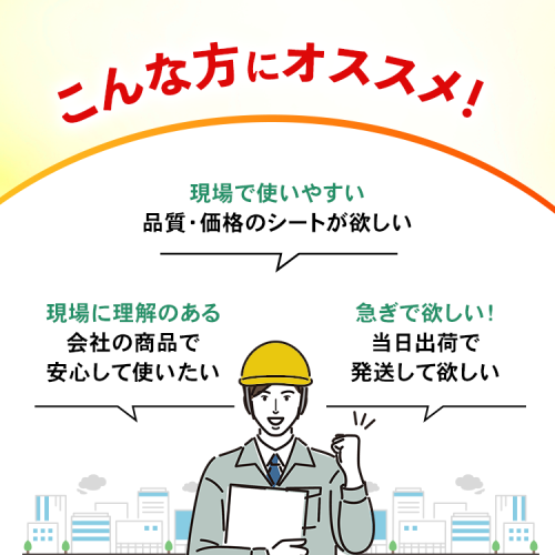 防炎・防水効果に優れ、現場・資材の養生に最適です。
