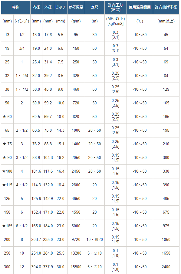 【特長】 ●外面が凹凸(内面は平滑)のため、特に可とう性に優れています。