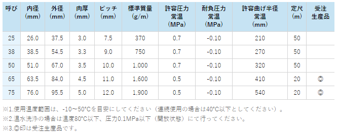 ●水中ポンプや、ダイヤフラムポンプ等の排出用※油分が含まれる食品や流体の輸送には適していません。