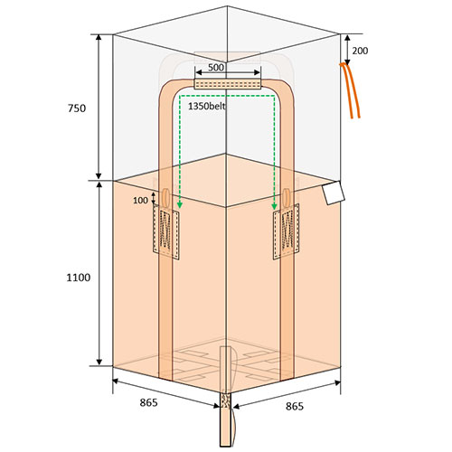 - 内容物を充填・運搬した後、反転ベルトをフォークリフトなどに引っかけてひっくり返して内容物を排出するために使用します。