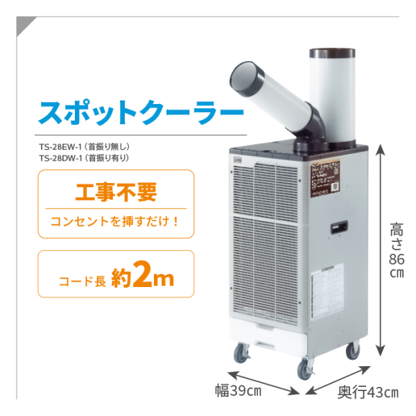 | 商品名 | 【廃番】TRUSCO スポットエアコン 単相100V首振り機能付 TS-28DW-1 |