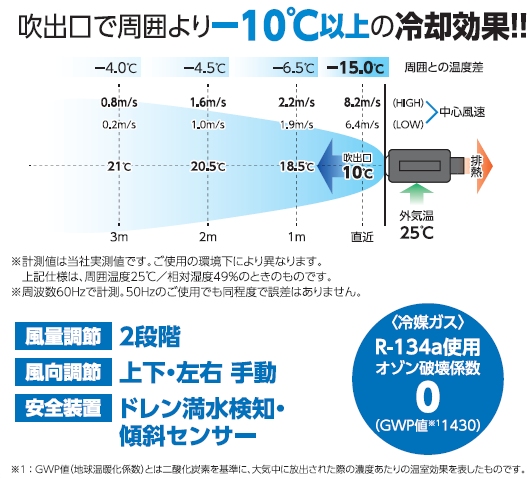 ●吹出口で周囲より-10℃以上の冷却効果