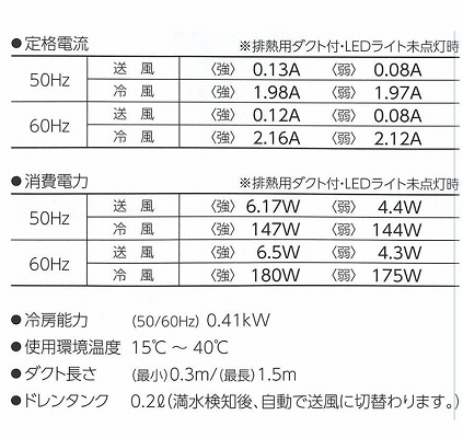 ・50Hz 冷風:〈強〉1.98A〈弱〉1.97A