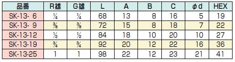商品名 清水 SK式回転アダプタ ストレートタイプ SK-13(R x G) SUS304 SK-13-6