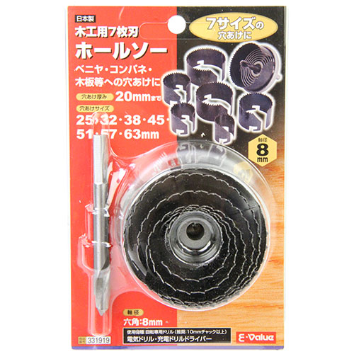 | 商品名 | E-Value 木工用7枚刃ホールソー 20MM |