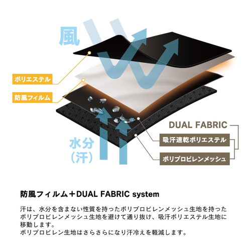 ●汗を保持せず外側の生地に逃がすため肌面はさらさらになり、汗冷えを軽減します。