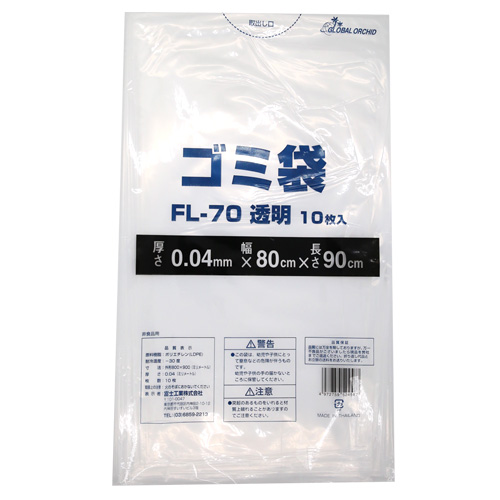 | 商品名 | 富士工業 ポリ袋 オーキッド 透明 0.04mm厚 70L 10枚入1パック FL70 |