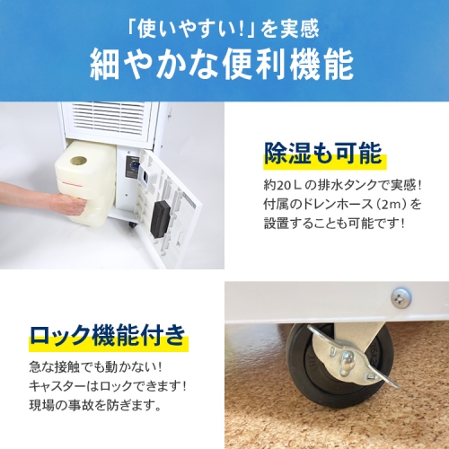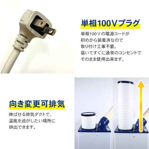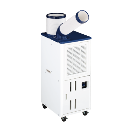 ●どこでも少人数を効率よく冷房。邪魔にならないスリムボディで、お庭や集会場、仮設建物にも最適。いつでもどこでも冷やせて便利です。