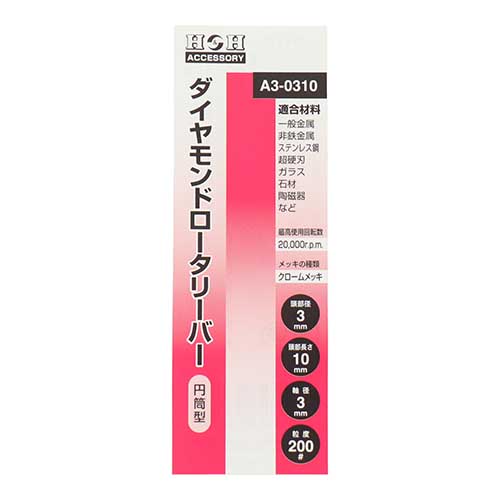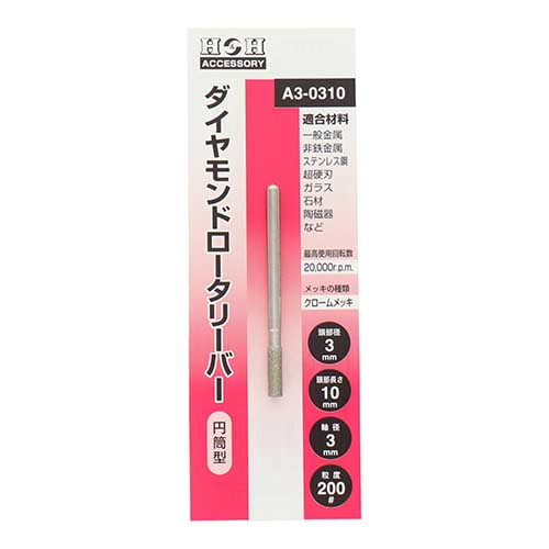 | 商品名 | H&H ダイヤモンドロータリーバー 円筒型 3mm A3-0310 |