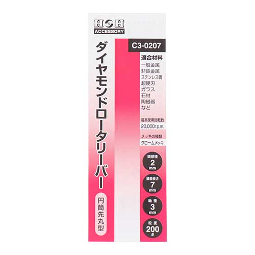 | 商品名 | H&H ダイヤモンドロータリーバー 円筒先丸型 2mm C3-0207 |