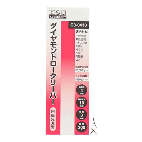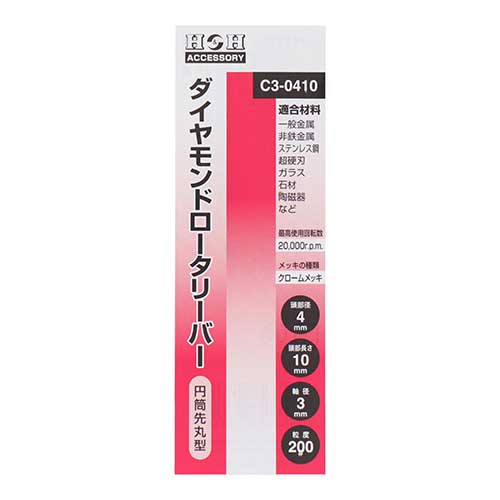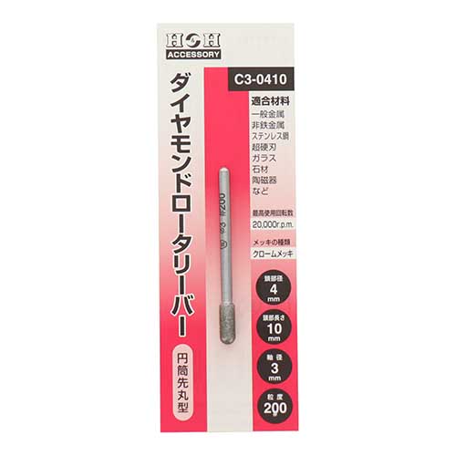 | 商品名 | H&H ダイヤモンドロータリーバー 円筒先丸型 4mm C3-0410 |