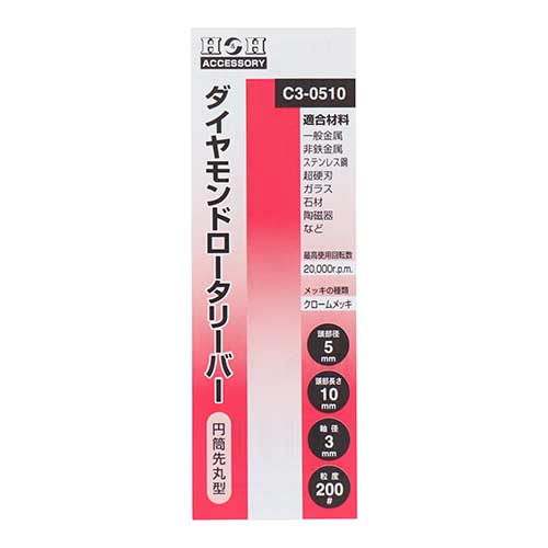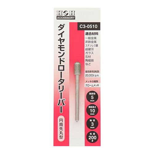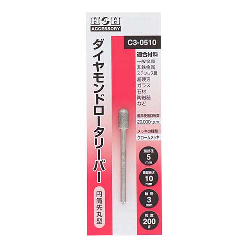 | 商品名 | H&H ダイヤモンドロータリーバー 円筒先丸型 5mm C3-0510 |