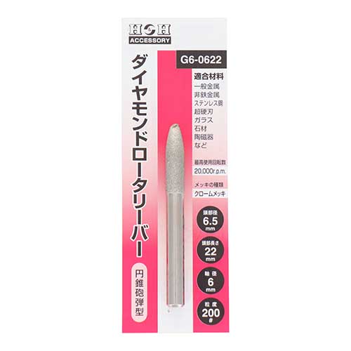 | 商品名 | H&H ダイヤモンドロータリーバー 円錐砲弾型 6.5mm G6-0622 |