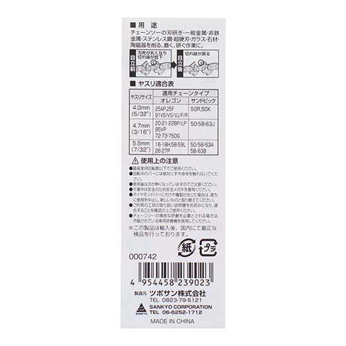 【用途】●チェンソーの刃研ぎ・一般金属・非鉄金属・ステンレス鋼・超硬刃・ガラス・石材・陶磁器を削る、磨く、研ぐ作業に