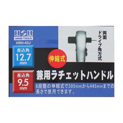 | 商品名 | H&H ラチェットハンドル 伸縮式タイプ(両面ドライブ角方式) 9.5mm/12.7mm HRH-43J |