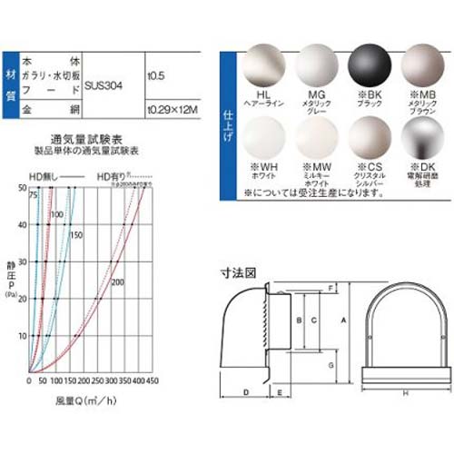 【特長】●自然給排気口を被う深型フードです●強風時の雨水の侵入を軽減します
