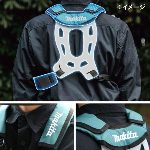 ●「両肩タイプ」肩掛けバンドにより製品荷重を両肩で受け、作業時の疲労を軽減。荷重を分散し蒸れにくい立体形状の樹脂プレート。