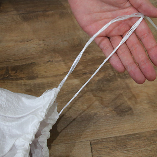 ●口紐付きで引っ張るだけで簡単に縛ることが出来ます。