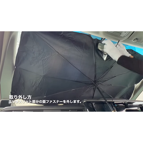 ●ドライブレコーダー装着車におすすめのV字スリット入りカーサンシェードです。