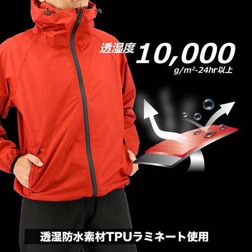 ●透湿防水素材 『TPUラミネート(透湿度10,000/m2・24h以上)』 を使用。