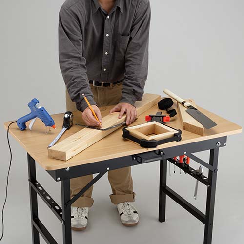 ●折りたたむ時は、ドライバーホルダーから工具類を取り外してください。接着剤のふき取りの際にシンナー等を使いますと、天板の表面目盛り表示が剥がれますのでご注意ください。