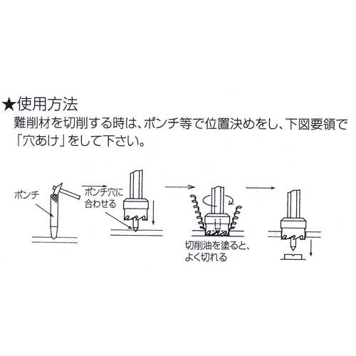 【特長】●シャンクの中にバネが入っており切削時にセンターピンで抜けカスを押し連続穴あけができます。