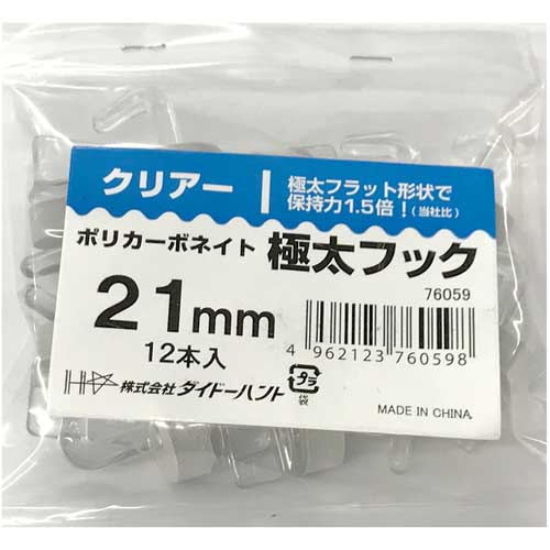 | 商品名 | DAIDOHANT ポリカーボネイト極太フック 12本入 25mm クリアー 10176061 |