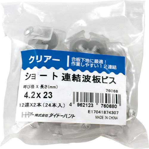 DAIDOHANT ショート連結波板ビス 12連×2本(24本入) 4.2×23mm クリア 10176068