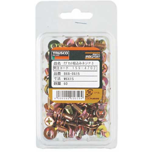 | 商品名 | TRUSCO 十字穴付アプセット組込 P=3 クロメート M5×10 80本入 /(+)アプセットボルト ばね座金+JISワッシャー付き B68-0510 |