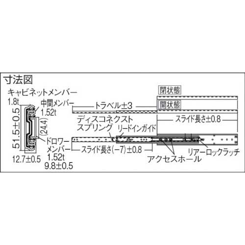 ●ドロワーメンバーを完全に引き出せるフルトラベルのスライドレールです。