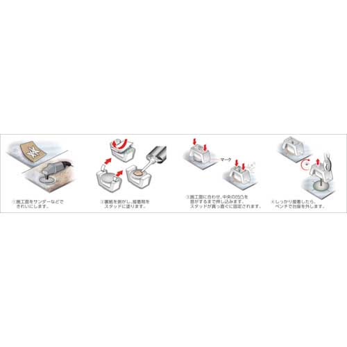 【特長】●フィクスチャーの使用で、接着剤を使用して誰でも簡単に取り付けの出来るスタッドです。