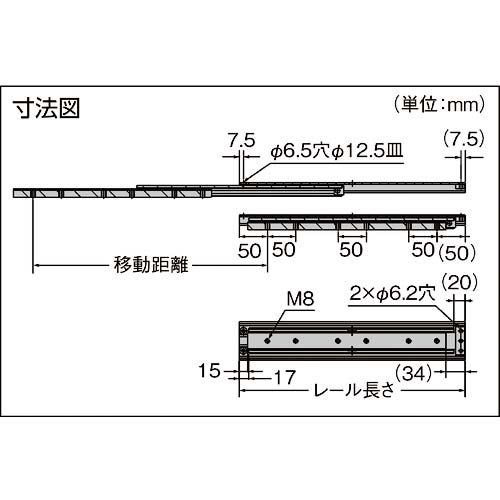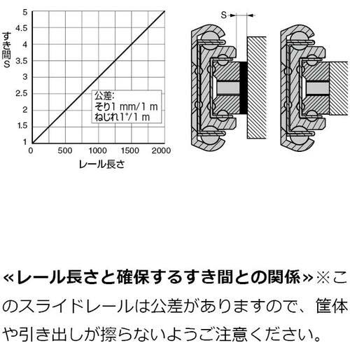 ●耐荷重は1組(2本)のスライドレールを縦に使用し双方を完全に引き伸ばした時のレール中央部での静荷重です。