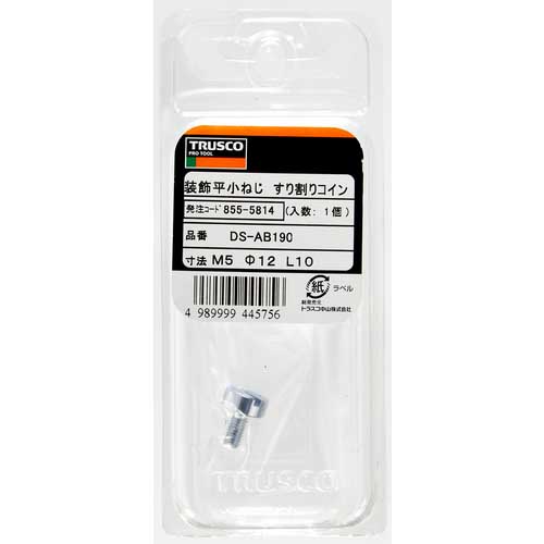 | 商品名 | TRUSCO 装飾平小ねじ すり割りコイン M5 Φ16 L15 1個入 DS-AB196 |