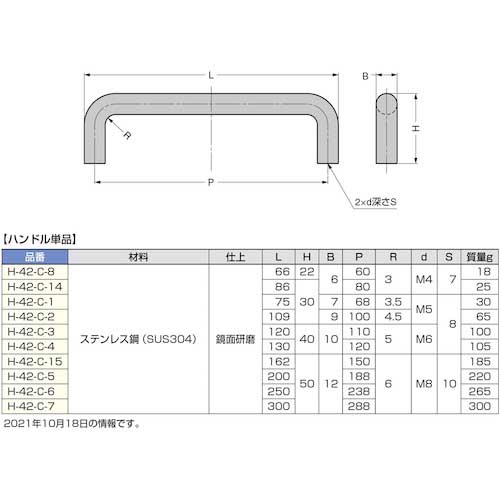 商品名 SUGATSUNE (100010560)H-42-C-8ステンレス鋼製ハンドル H42-C-8