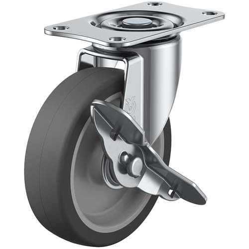 ユーエイ プレート式 自在 キャスター エラストマー 車輪径100mm ストッパー付き Sタイプ SG-S型 取付寸法82×40 SG-100ELS