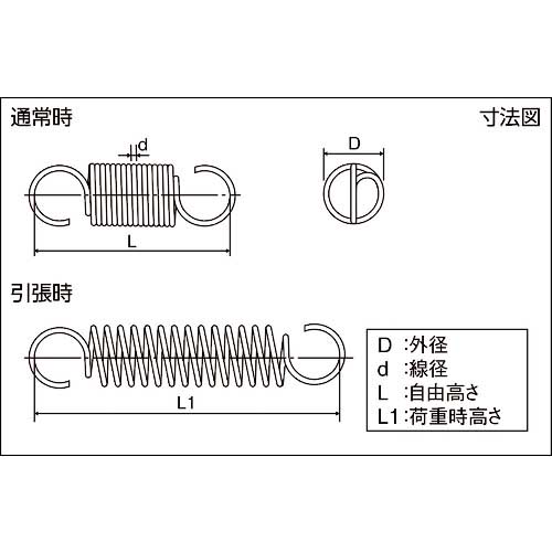| 商品名 | TRUSCO 引張コイルばね スチール D9.25Xd1.25XL94.2 62.5巻 5個入 TEST-88219 |
