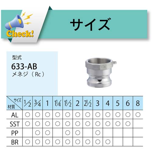 商品名 TOYOX カムロック アダプター メネジ アルミ 633-AB 1-1/2インチ AL 633-AB-1-1/2-AL