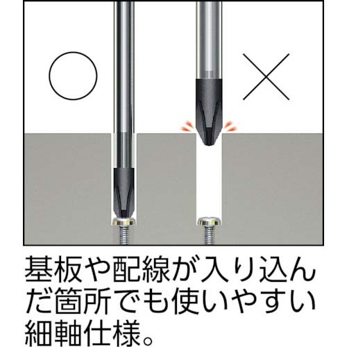 ●プラス:従来品よりワンランク細い軸径で家電製品に見られる細い穴・端子台、奥まった箇所のねじにも使えます。