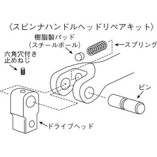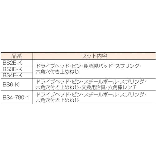 ●セット内容:ドライブヘッド、ピン、平座金、スプリング、六角穴付止めねじ、交換用治具、六角棒レンチ