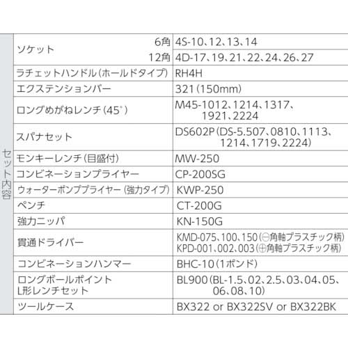 【特長】●工具を厳選し、各種産業機械の整備に適したセットです。