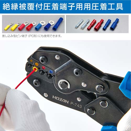 | 商品名 | HOZAN 圧着ペンチ 絶縁被覆付圧着端用 P-743 |