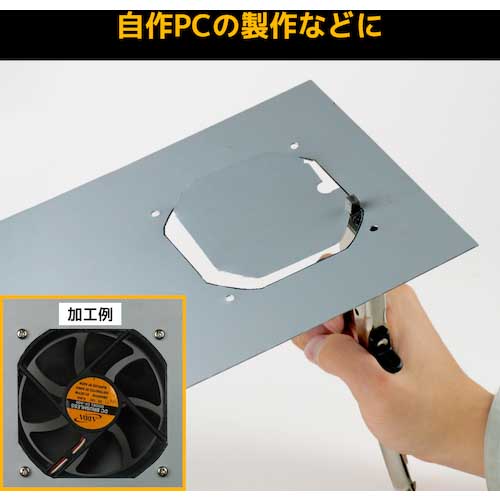【特長】●金属板を自在に切り抜き、切断できる金属切断工具(ハンドニブラー)です。