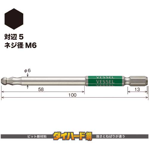 | 商品名 | VESSEL 剛彩ビット (片頭ボールポイント) 対辺5×100mm GSBP050S |