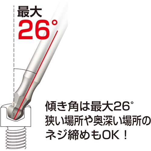【特長】●ボールポイントビットは、駆動部が六角穴の入り口付近に接触する当社独自の「レインボール形状」をもとに設計しています。