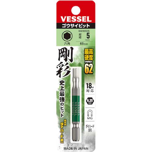 | 商品名 | VESSEL 剛彩ビット (片頭ヘックス) 対辺5×65mm GSH050S |